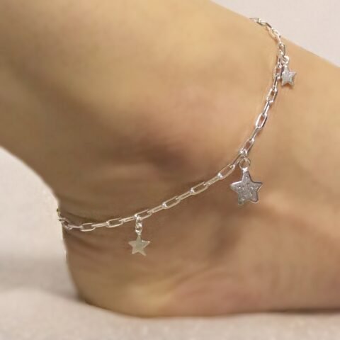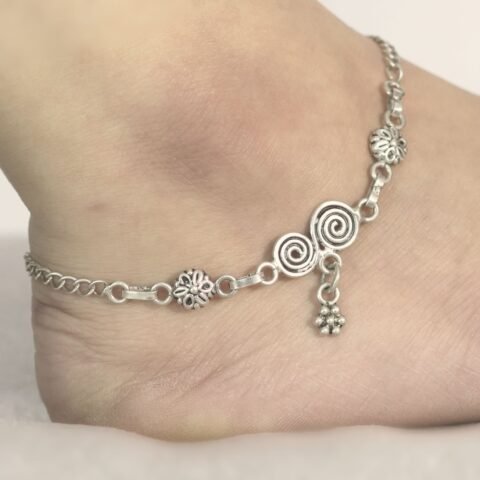 Silver Studded American Diamond Circle Shape Double layer Italian Anklet