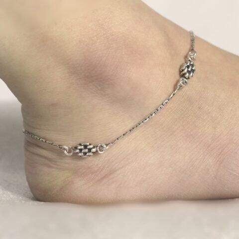 Silver Studded American Diamond Square Double Layer Italian Anklet