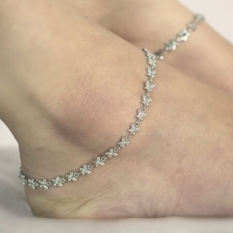 Sterling Silver Studded Blue American Diamond Floral Chain White Anklet