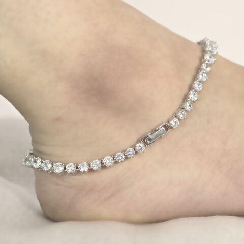 Silver Studded American Diamond Circle Shape Double layer Italian Anklet