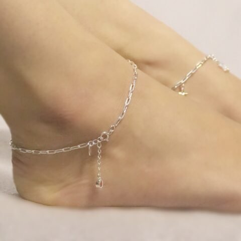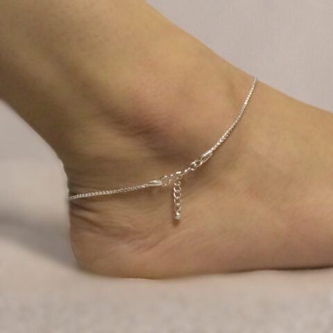 Silver Studded American Diamond Square Double Layer Italian Anklet