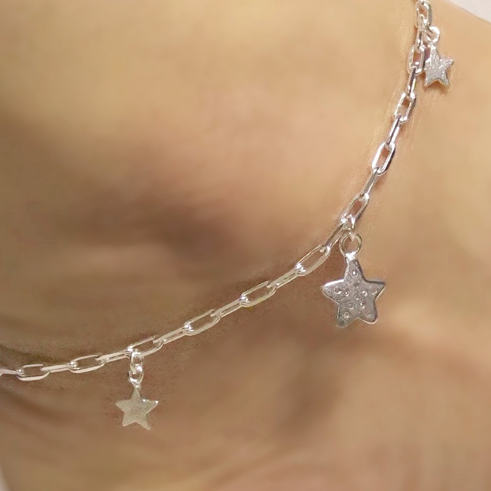 Starling Silver Charm Star anklet For Women